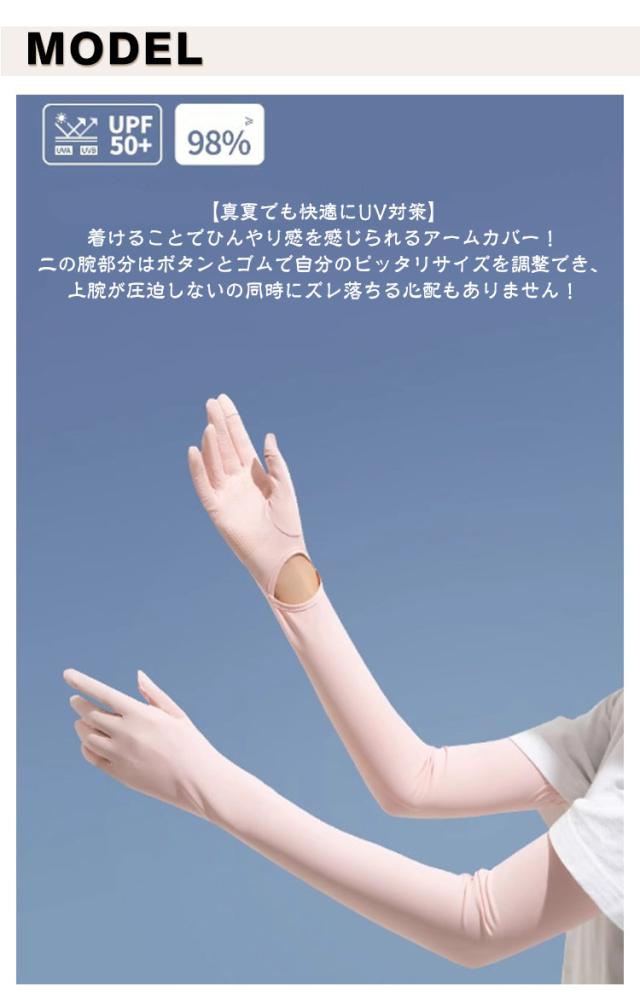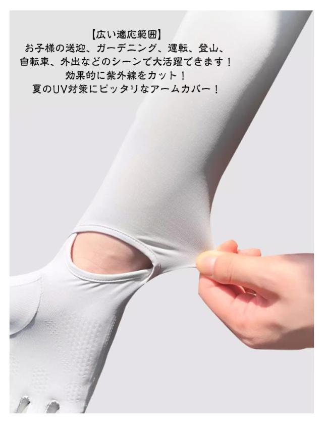 | 【真夏でも快適にUV対策】着けることでひんやり感を感じられるアームカバー!二の腕部分はボタンとゴムで自分のピッタリサイズを調整でき、上腕が圧迫しないの同時にズレ落ちる心配もありません! 【指先まで紫外線カット】手のひら部分は指先までの手袋の設計でほかの手の甲までのタイプと違って、腕から指先まで紫外線から守ります!さらに親指と人差しの指先部分も着脱可能でスマホの操作など指先の細かい作業も楽々!腕から手袋着脱可能、ちょっと手を出したい時は便利!アームカバーを外さなくて作業可能!蒸し暑いの夏でより快適に紫外線カット! 【滑り止め効果抜群】手のひらの裏部分にシリカゲル加工で滑り止め効果が抜群、ハンドル操作やサイクリング、釣り時のハンドグリップを向上させます!接触冷感の素材を採用しておりますので、付ける瞬間にひんやりと感じられ、伸縮性が良く、ストレスフリーな着け心地! 【広い適応範囲】お子様の送迎、ガーデニング、運転、登山、自転車、外出などのシーンで大活躍できます!効果的に紫外線をカット!夏のUV対策にピッタリなアームカバー! | |