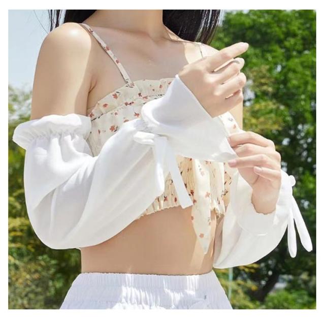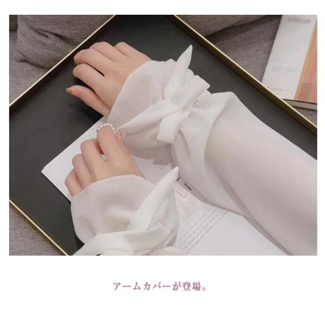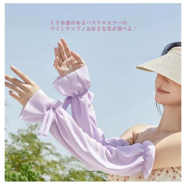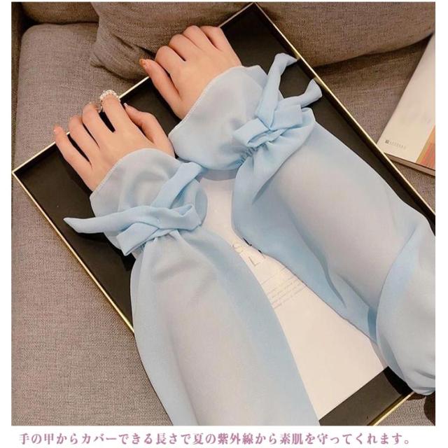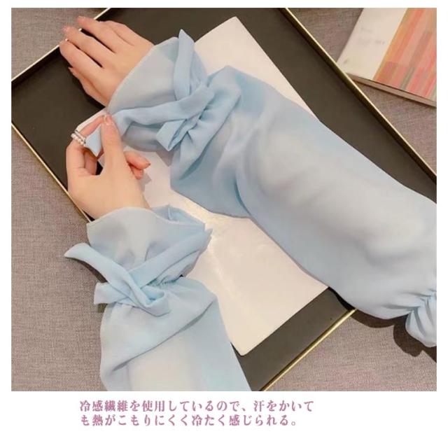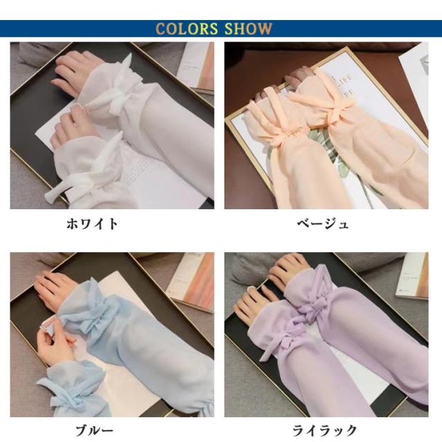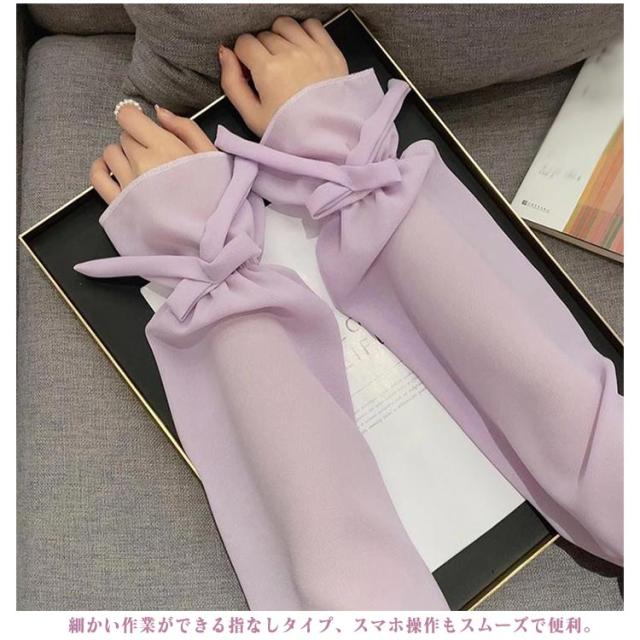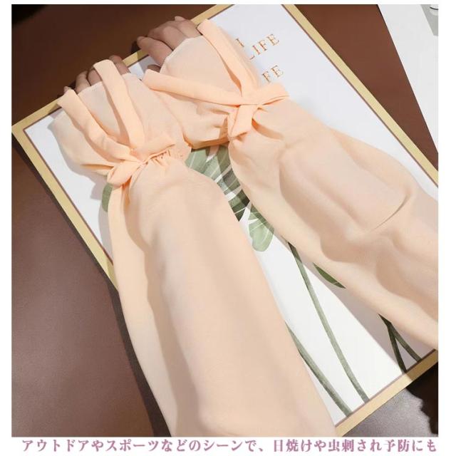 送料無料 ロング アームカバー UVケア 透け感 冷感 レディース 腕カバー ゆったり 紫外線対策 uv リボン付き 可愛い おしゃれ 接触冷感 遮光 送料無料 冷房 通気性 スポーツ 涼しい 日焼け対策 アウトドア 指なし ゴルフ