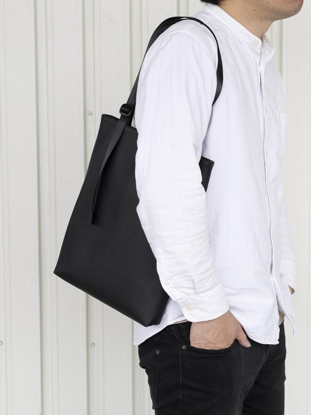 細かいシボの光沢のない高級感たっぷりの牛革トートバッグです。落ち着いた雰囲気でビジネスから通学・休日まで幅広くお使いいただけます。