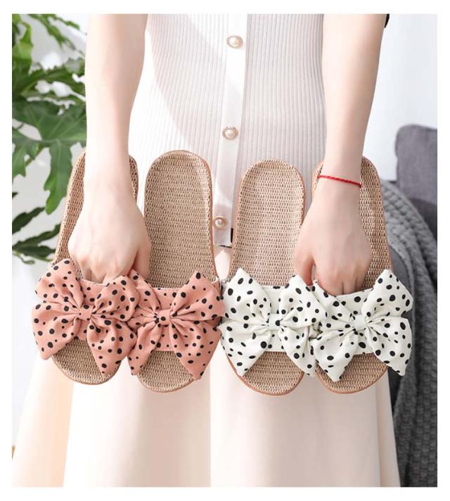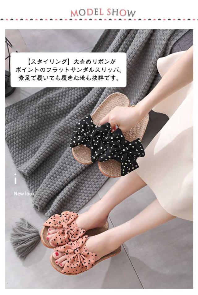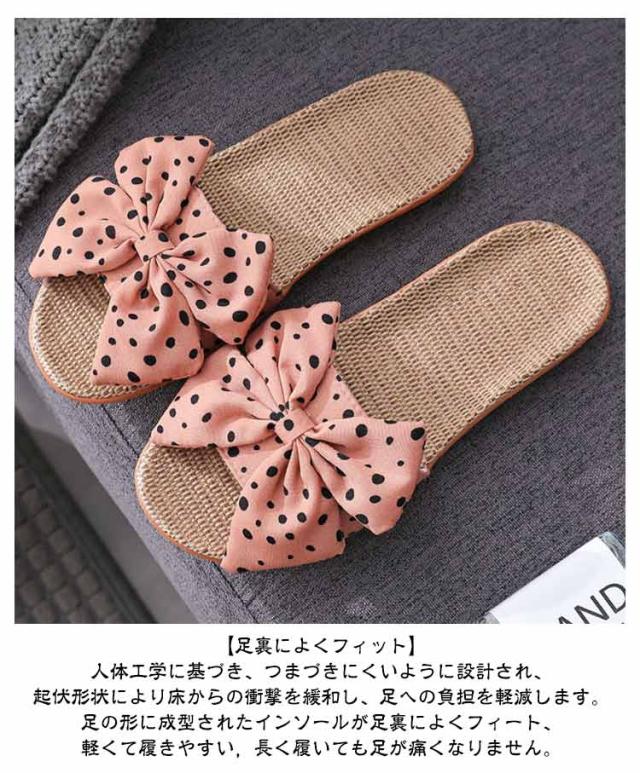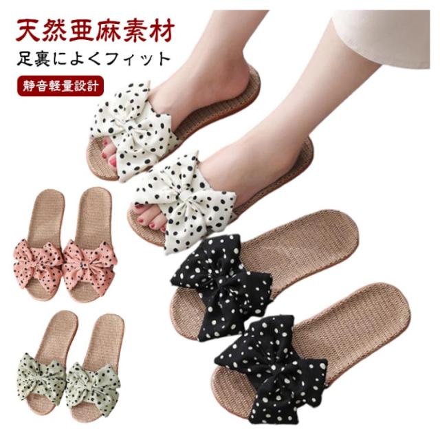 ルームシューズ 大きい蝶結び スリッパ レディース サンダル 夏用 かわいい 涼しい スリッパ 夏 リボン おしゃれ スリッパ ドット 室内 ルームシューズ 麻スリッパ スリッパ 蒸れない 軽量 リネン 室内履き 可愛い
