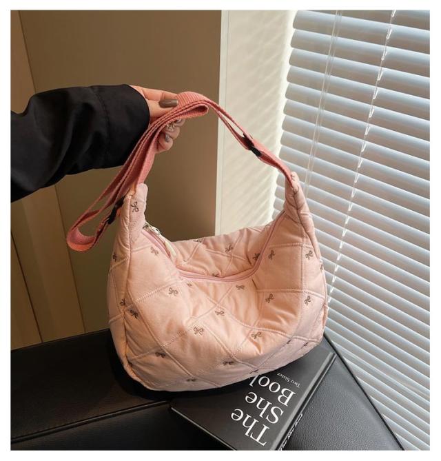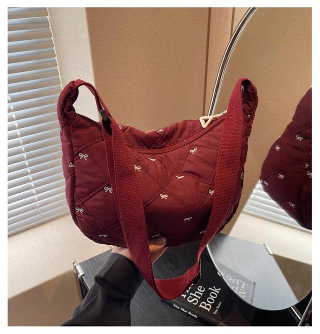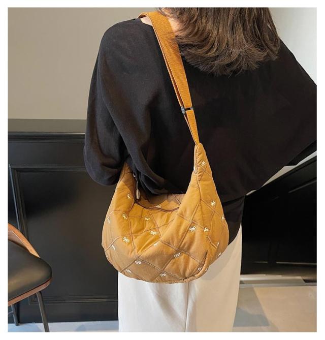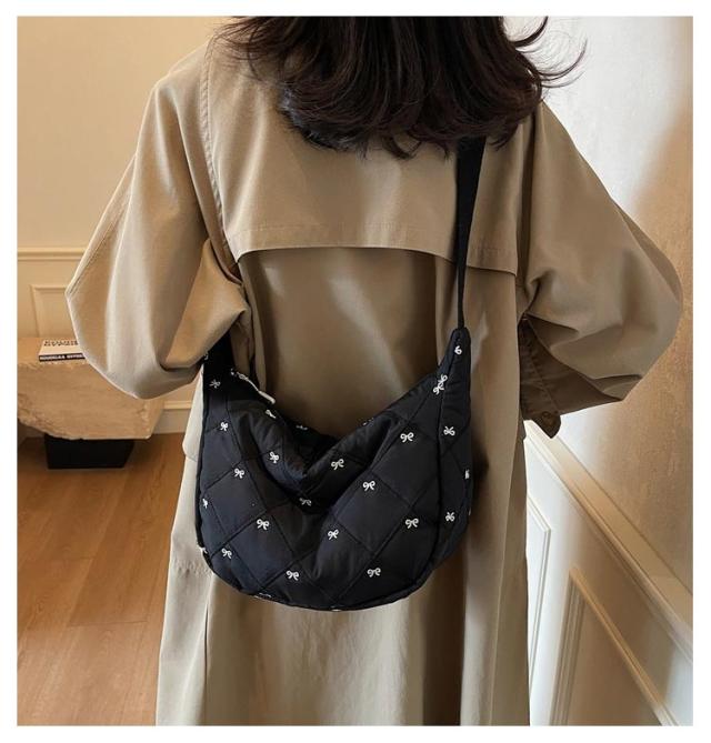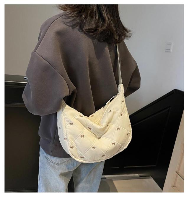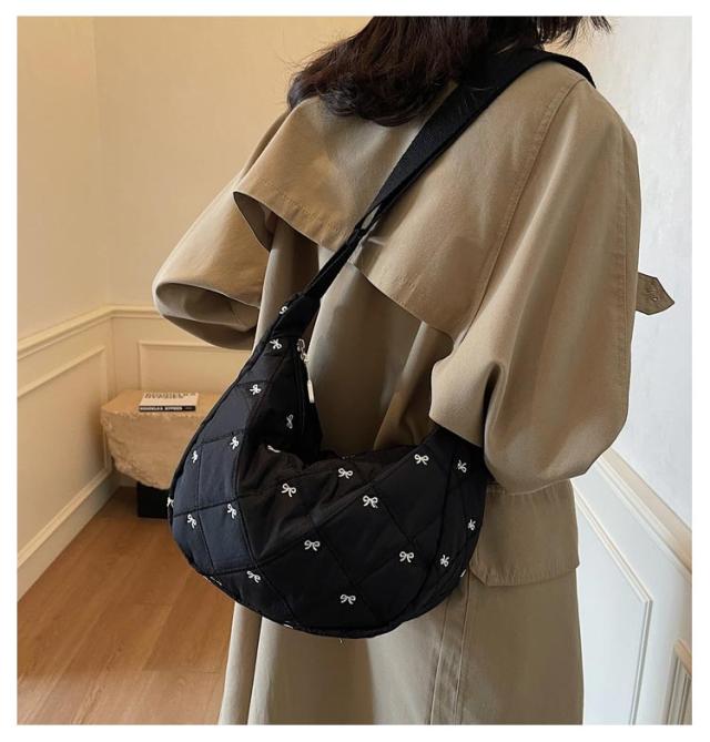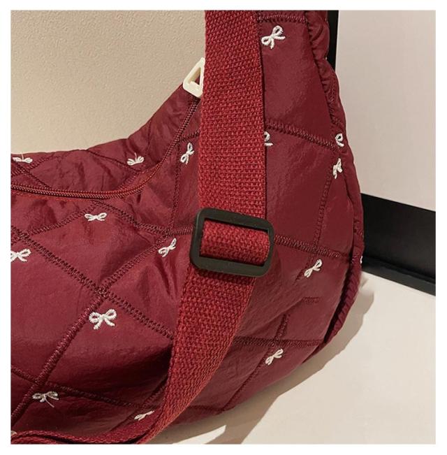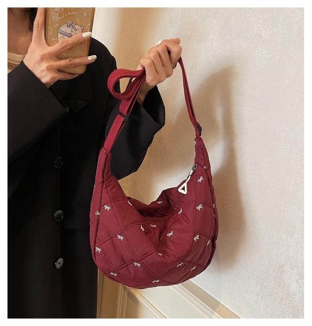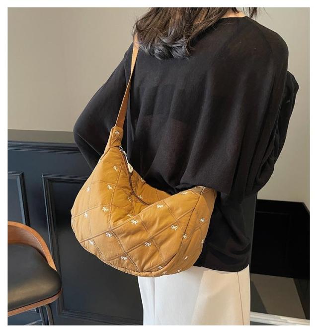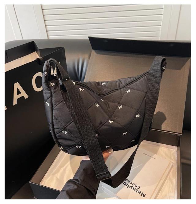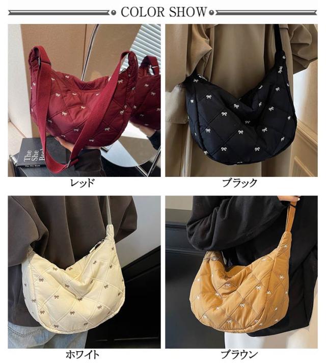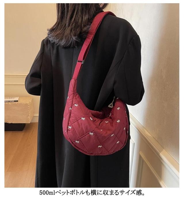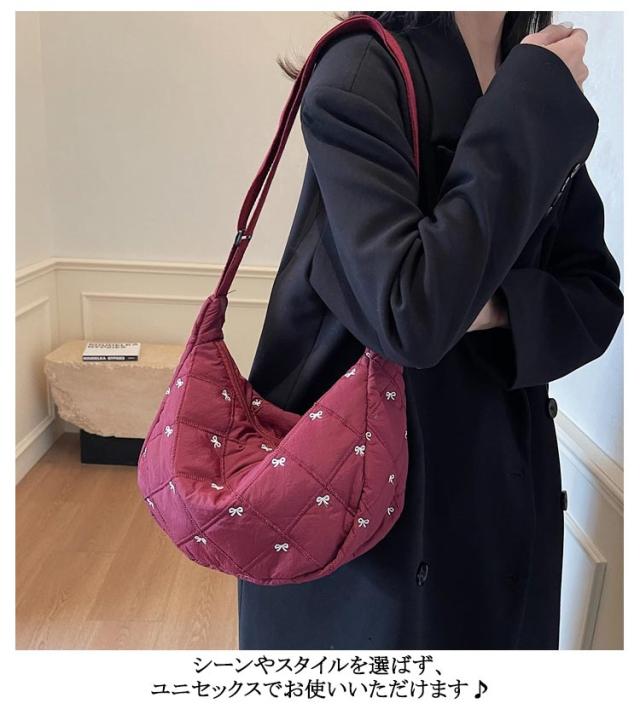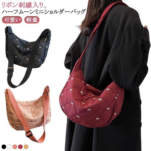 刺繍 ミニ ショルダーバッグ レディース ハーフムーン おしゃれ ミニバッグ 可愛い リボン バナナショルダー バッグ バック ボディバッグ ポシェット ハーフムーン 斜めがけ ラウンド 小さめ 軽量 おしゃれ スポーツ