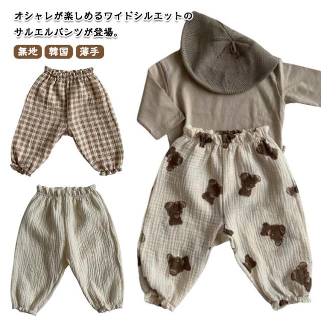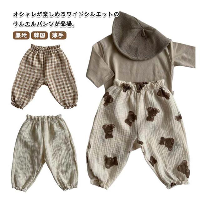 長ズボン 男の子 クマ柄 パンツ 虫よけ 女の子 ベビー 無地 チェック柄 ハート柄 ロングパンツ 花柄 子供 キッズ 春夏 綿 ベビー ロングパンツ ウエストゴム 蚊よけパンツ ルームウェア サルエルパンツ 薄手 部屋着 赤ちゃん 保育園 幼稚園 ナチュラル