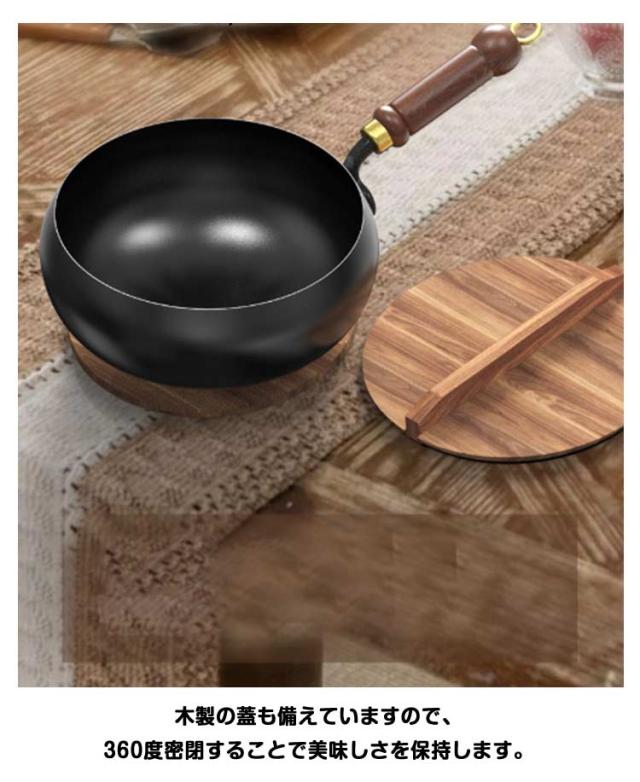 家庭用 鉄製 フライパン 鉄分摂取 炒め鍋 調理道具 深型 焦げにくい 木製 高温調理 鉄のフライパン 中華鍋 キャンプ 蓋付き 誕生日 結婚祝い 新築祝い プレゼント ギフト 軽量 小型 深型 フライパン