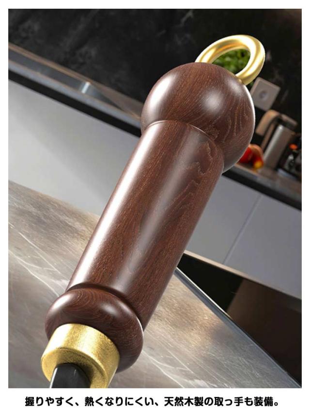 | 【深型】【鉄製フライパン】【【木製蓋付き】 耐久性が高く長持ちするフライパンです。 深型で少ない油で揚げ物も! 握りやすく、熱くなりにくい、天然木製の取っ手も装備。 木製の蓋も備えていますので、360度密閉することで美味しさを保持します。 鉄製なので熱の伝わりが良く、高温調理が可能です。 ご注意:鍋底が平らでないため、IH調理器での使用は推奨いたしません | |