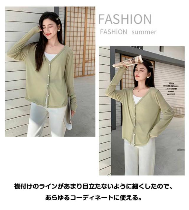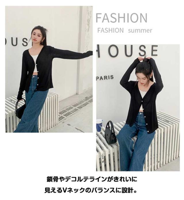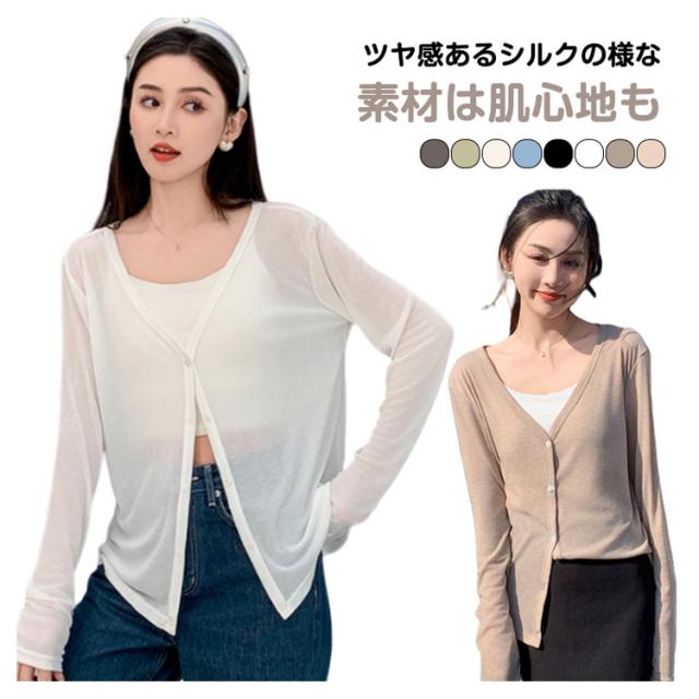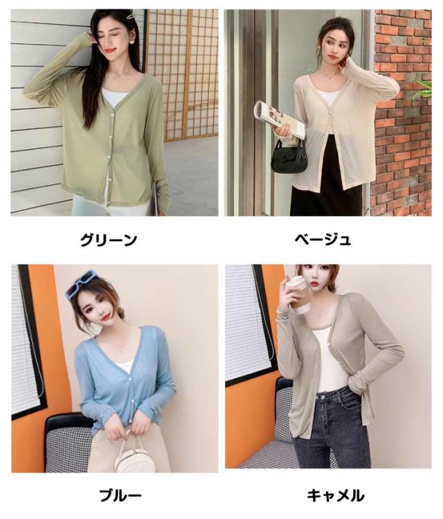カーディガン 夏 薄手 長袖 トップス 接触冷感 Vネック 大きいサイズ サマーニット ニット トップス きれいめ カーディガン カーディガン 紫外線対策