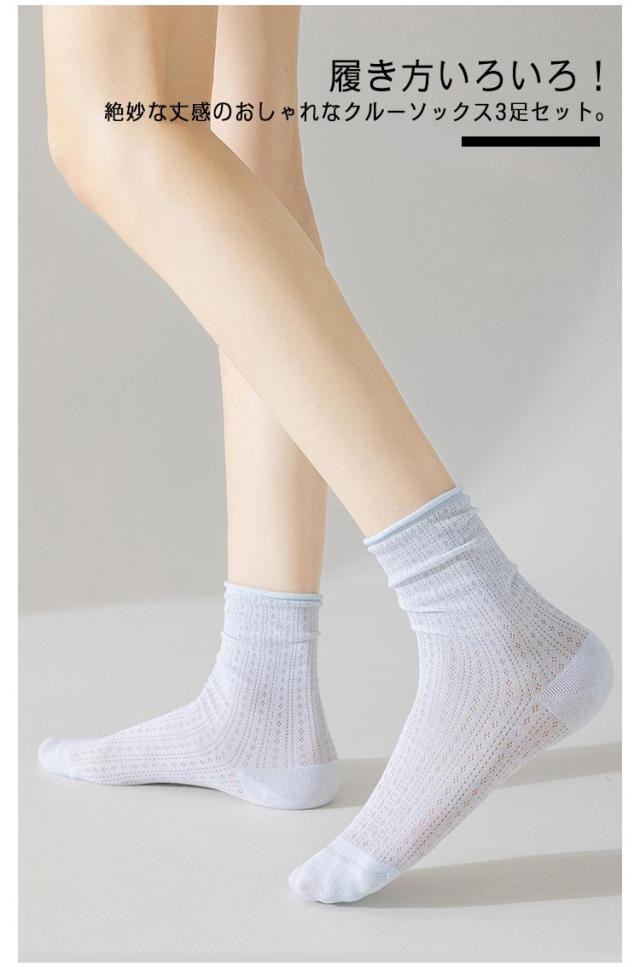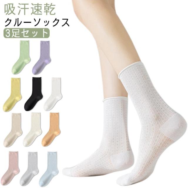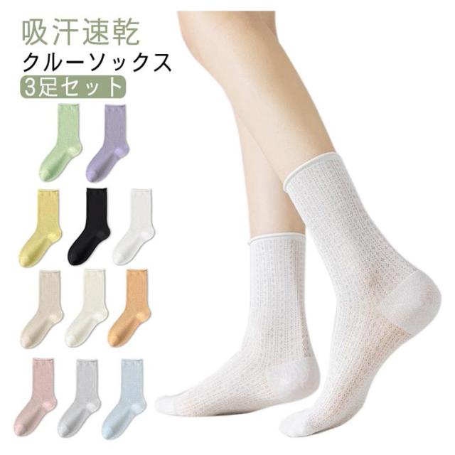 涼しい レディース クルーソックス 靴下 送料無料 メッシュ カラーソックス 3足セット ゆるっと履ける ショートソックス 送料無料 薄手 かかとなし 冷感 大人可愛い 通気性 蒸れない 吸汗速乾 無地 伸縮性 おしゃれ カラフル