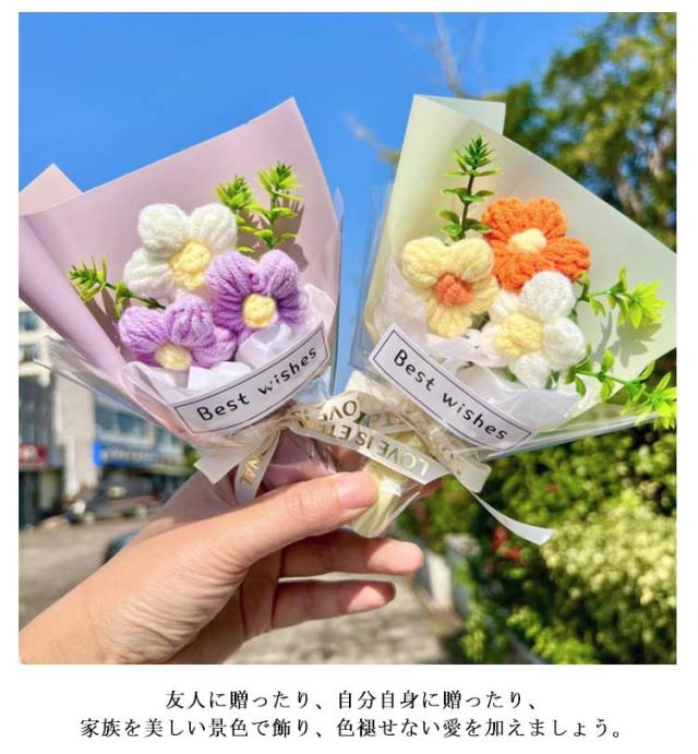 母の日 ニットブーケ ニットブーケ 成人式 ニットフラワー プレゼント 花束 ギフト 可愛い 毛糸 かぎ針編み 手作り花 子供 ミニブーケ 造花 飾り ミニサイズ 記念日 敬老の日 手つくり 卒業式 バレンタイン お祝い 推し活 結婚記念日 父の日