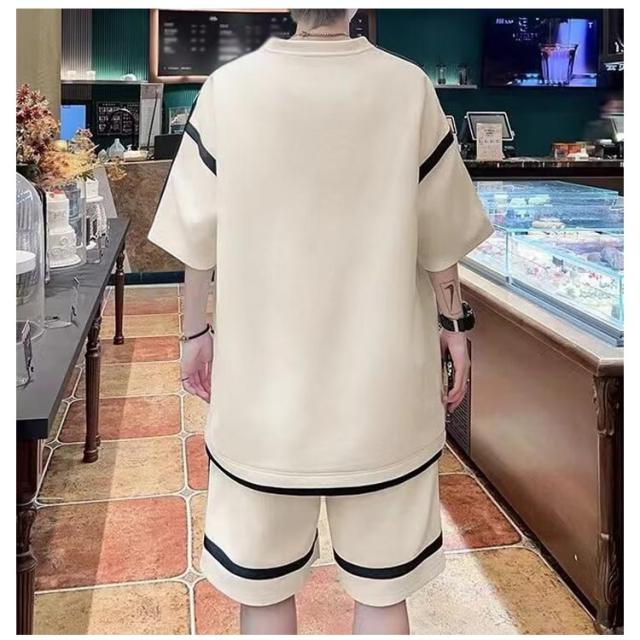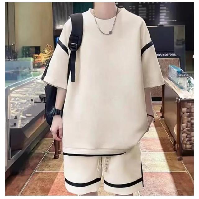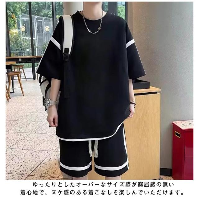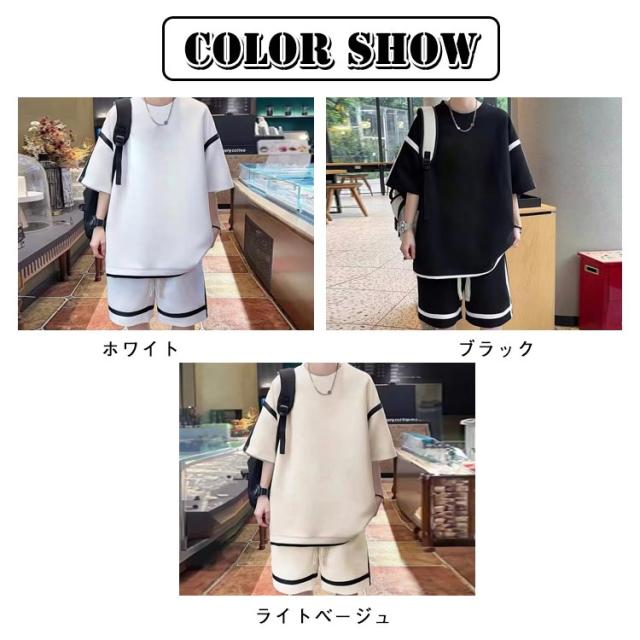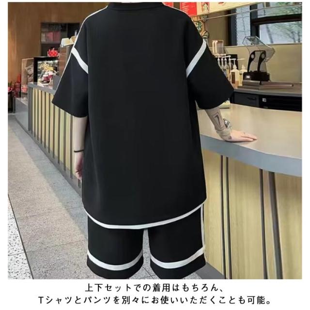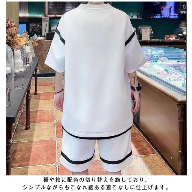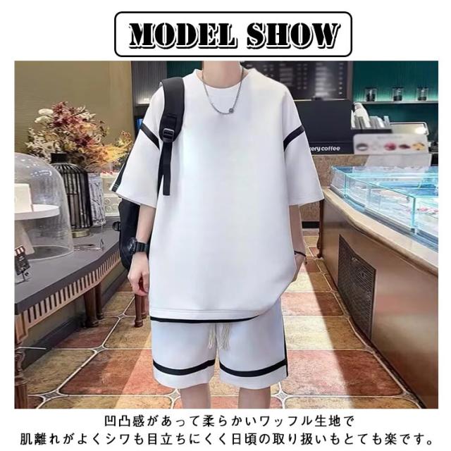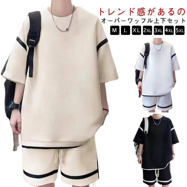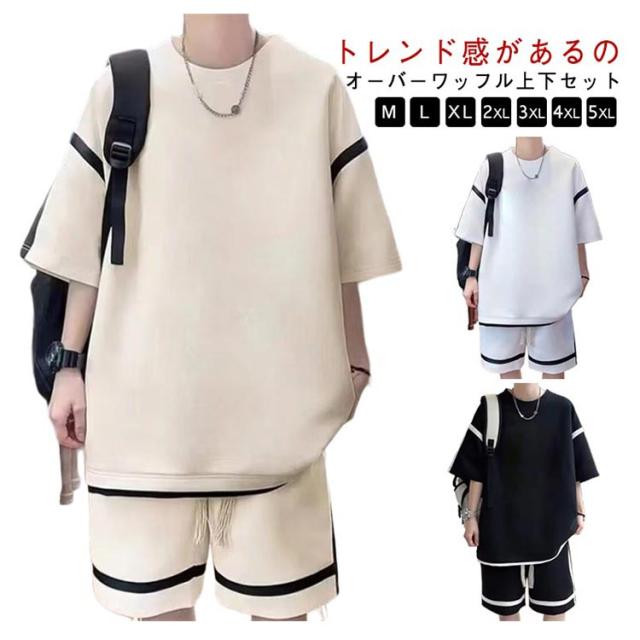 ワッフル オーバーサイズ 半袖カットソー 上下セット セットアップ 春 夏 ワッフル ショートパンツ tシャツ 大きいサイズ ハーフパンツ 短パン メンズ ゆったり 半袖 ルームウェア 部屋着 薄手 配色 バイカラー カジュアル ストリート 韓国 メンズファッション