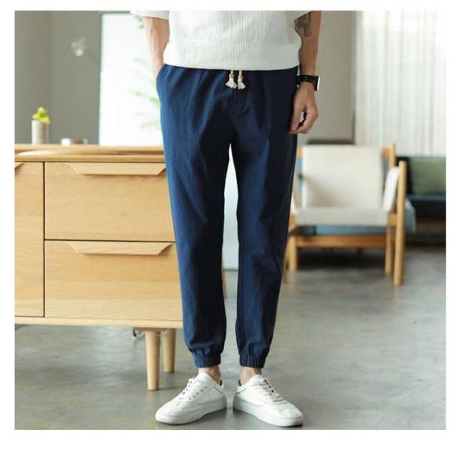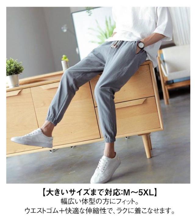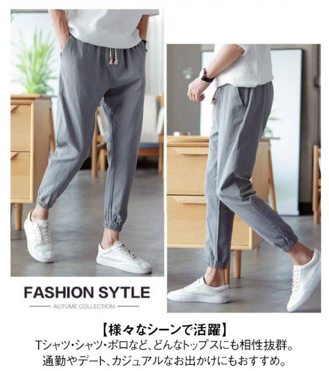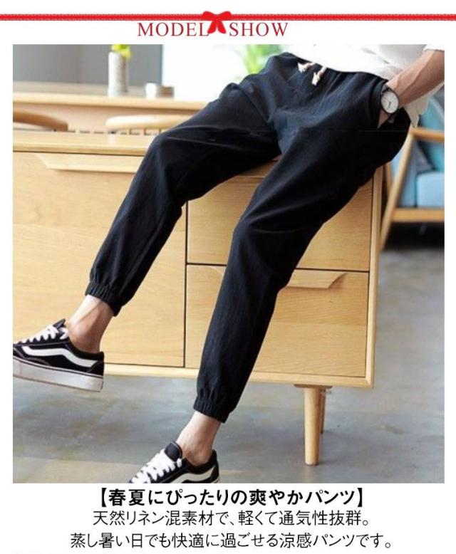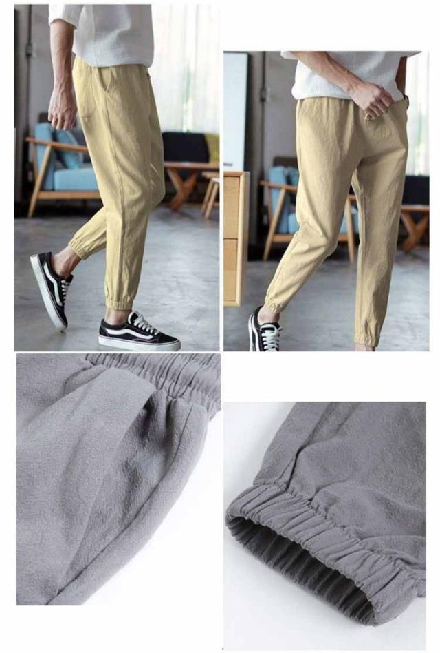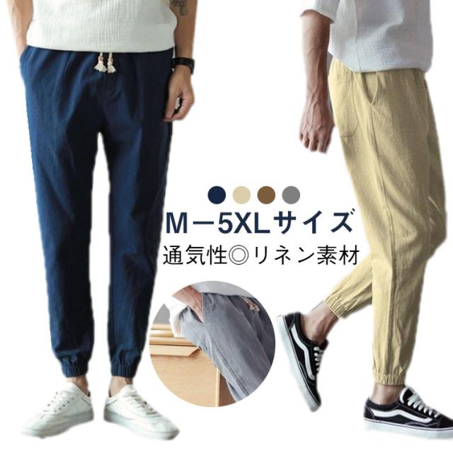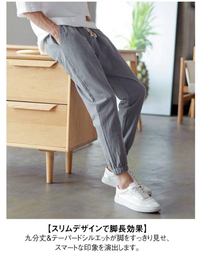 パンツ スリムパンツ リネンパンツ 春夏 夏用 ズボン 裾絞り 麻 カジュアルパンツ 九分丈パンツ 涼しい リネンパンツ 男性 M-5XL 大きいサイズ ウエストゴム