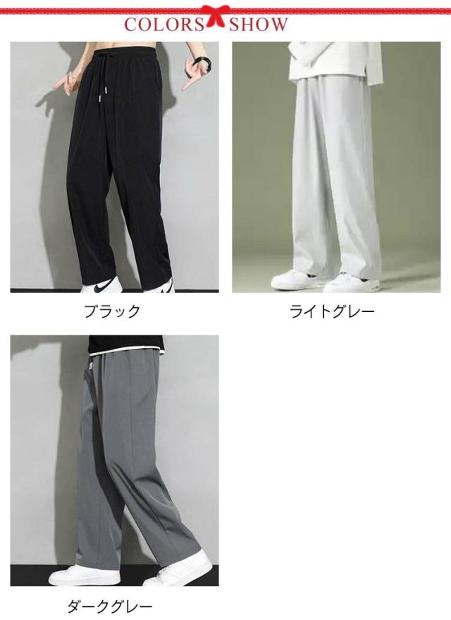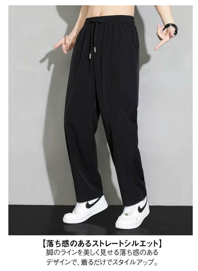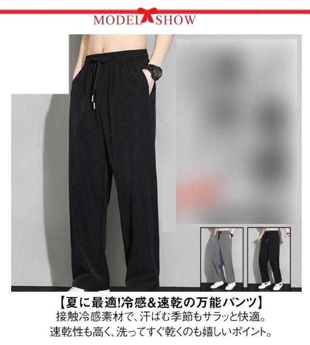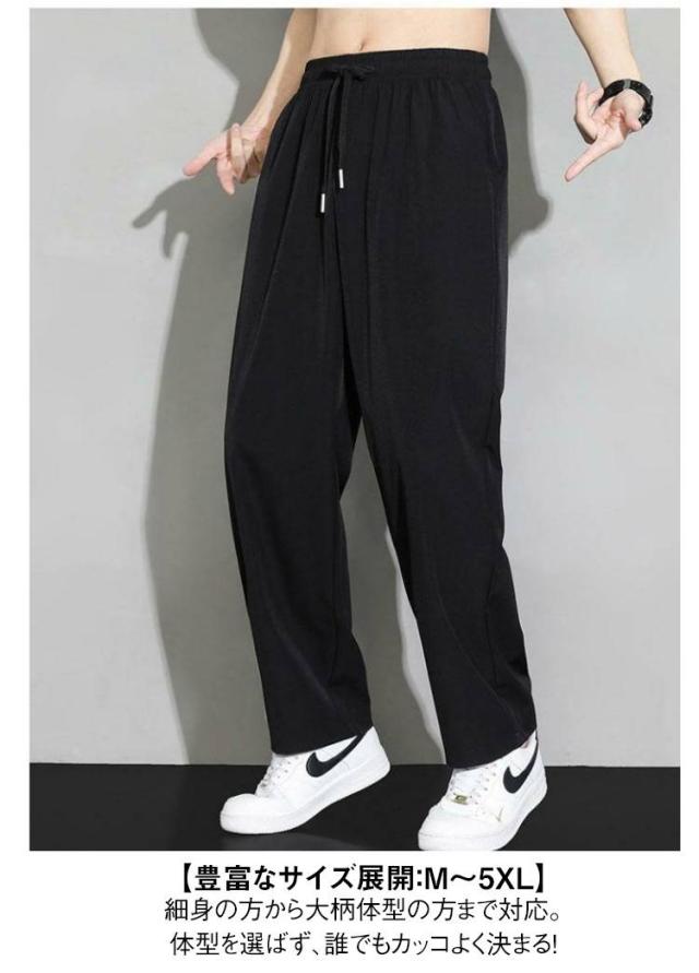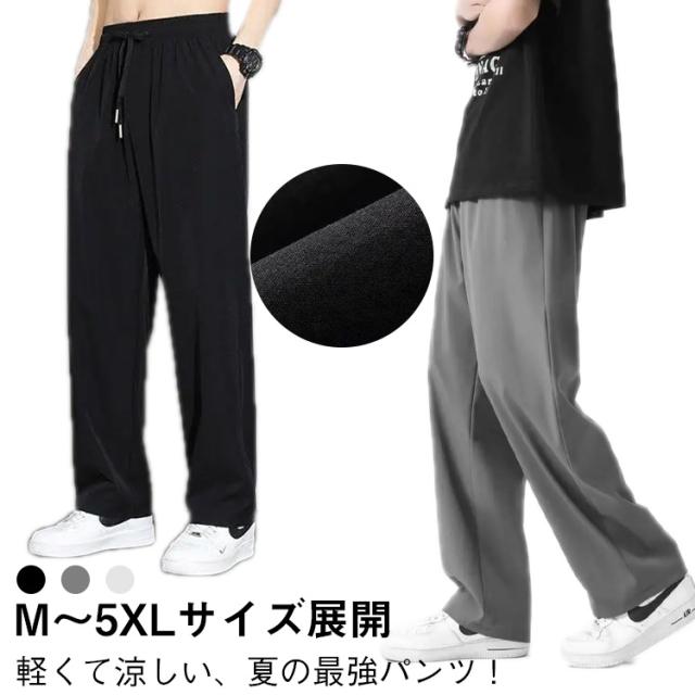 涼感ズボン メンズ 冷感パンツ 接触冷感パンツ 夏用 パンツ アイスシルク ワイドパンツ 速乾 イージーパンツ 大きサイズ 冷感パンツ カジュアル ウエストゴム ブラック グレー M−5XL