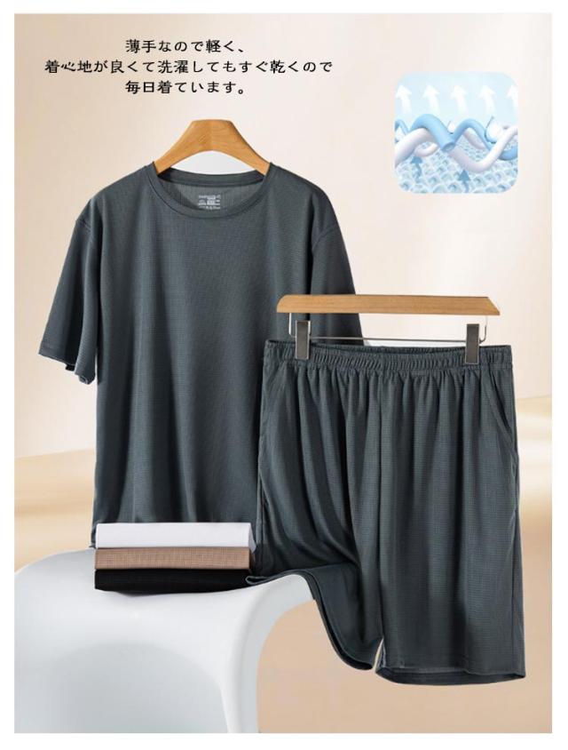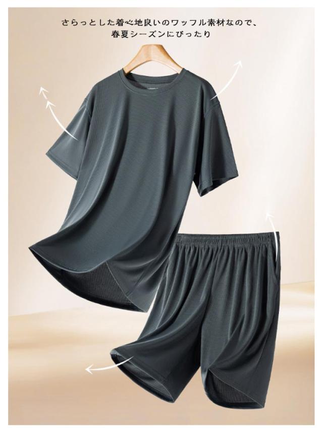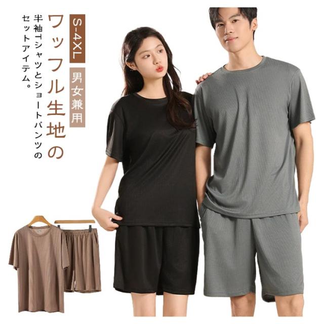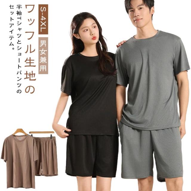 | ワッフル生地の半袖Tシャツとショートパンツのセットアイテム。【S-4XL】【男女兼用】 さらっとした着心地良いのワッフル素材なので、春夏シーズンにぴったり リラックス感あるゆったりサイズトップスとショートパンツなので、おうち時間やリラックスタイムを快適に過ごせます 薄手なので軽く、着心地が良くて洗濯してもすぐ乾くので毎日着ています。 ルームウェアやパジャマとしても良し、ちょっとしたお出掛け着で着るワンワイルウェアとしても良しのユーティリティアイテム。 | |