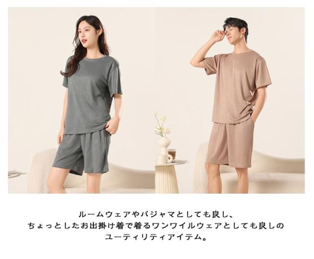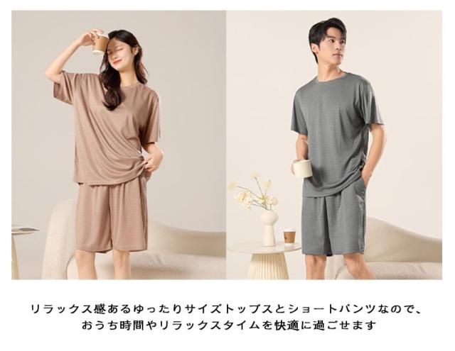 ショートパンツ レディース ペア ルームウェア ハーフパンツ 上下セット 半袖 メンズ 春 部屋着 パジャマ カットソー 薄手 ナイトウェア 寝間着 tシャツ プルオーバー 夏 ゆったり 体型カバー 半袖 夫婦 カップル お揃い 大きいサイズ ストレッチ 通気性