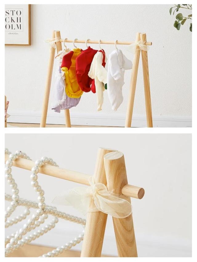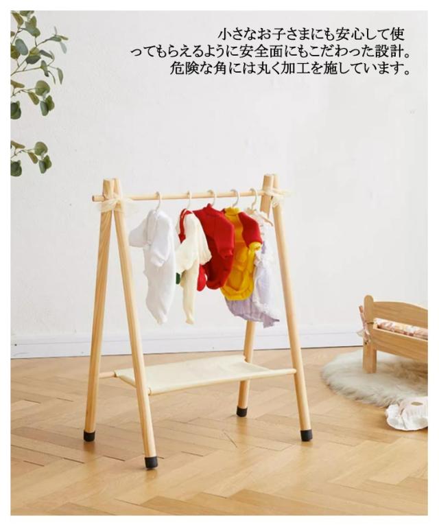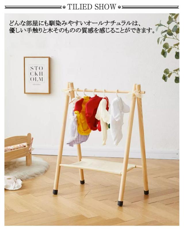 ラック 子供 ハンガーラック 幅52cm/高さ75cm 洋服掛け 折りたたみ キッズ キッズハンガーラック 子供服 木製 子供部屋 ハンガー ハンガーポール ポールハンガー 衣類収納 頑丈 コンパクト 省スペース 収納 折りたたみ リビング
