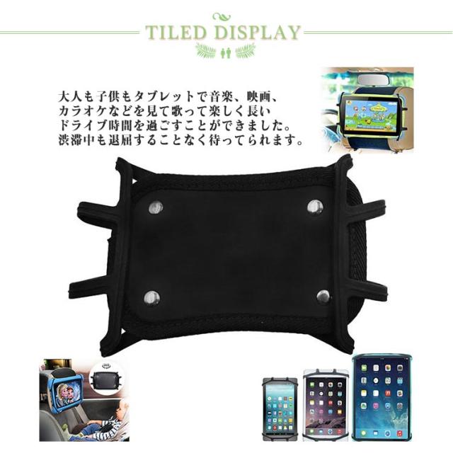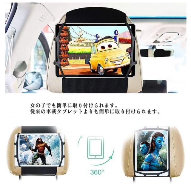 | ヘッドレストに装着!スマホ・タブレット兼用 車載ホルダー 取り付け簡単・収納に便利!工具不要、ネジ不要のシンプルな車載タブレットマウントです。1分で取り付け可能です。女の子でも簡単に取り付けられます。従来の車載タブレットよりも簡単に取り付けられます。 7-10.5インチ対応・ケース付きも使用可能。 大人も子供もタブレットで音楽、映画、カラオケなどを見て歌って楽しく長いドライブ時間を過ごすことができました。渋滞中も退屈することなく待ってられます。 | |