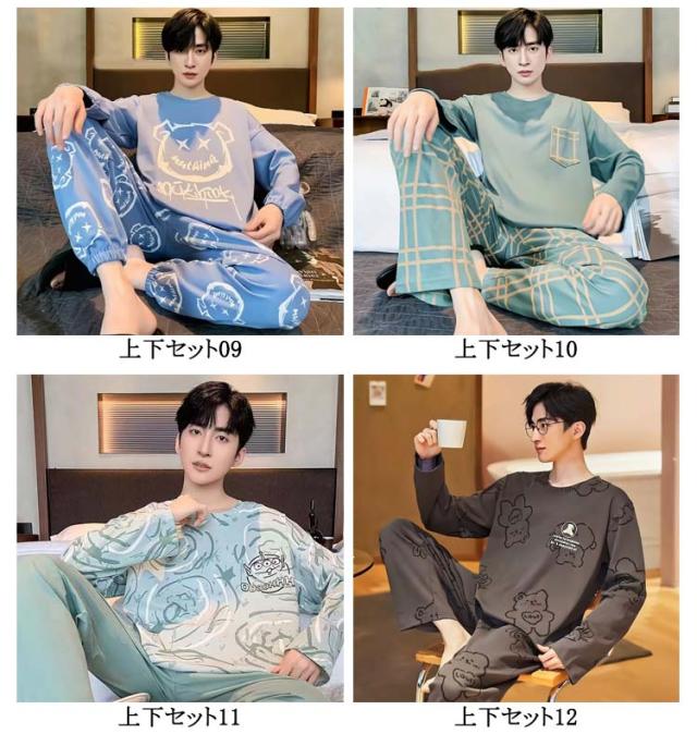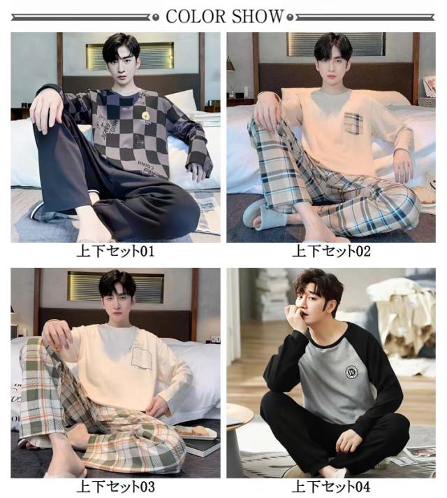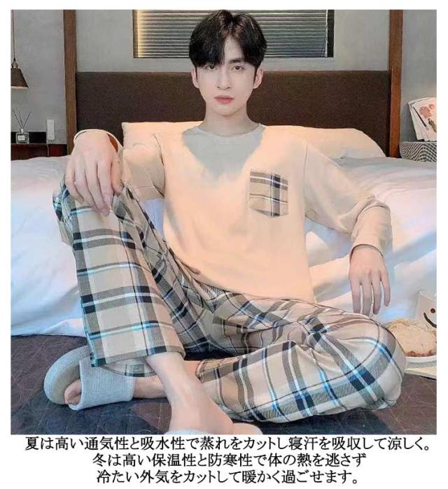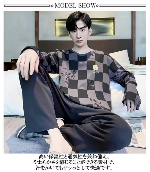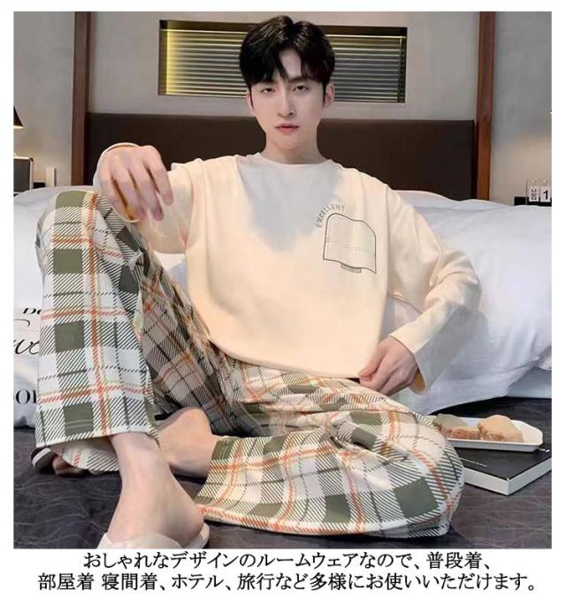 長袖Tシャツ パジャマ ナイトウェア 上下セット 秋 パジャマ 無地 春 ルームウェア 寝巻き 部屋着 男性用 寝間着 送料無料 吸汗 通気 肌に優しい セットアップ 大人 薄手 ロングパンツ リラックスウェア 大きいサイズ カジュアル 春秋 長ズボン 冬 父の日 ギフト