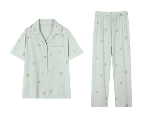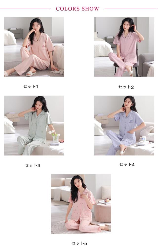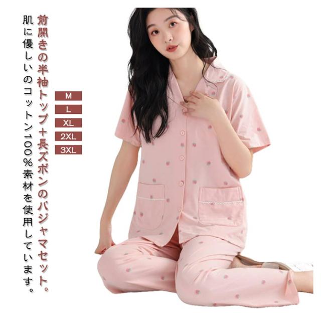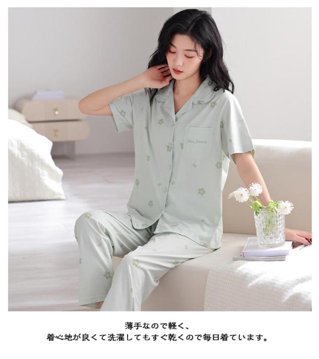 前開き 寝巻き 綿100% 薄手 パジャマ ロングパンツ 半袖トップス レディース ルームウェア 上下セット 夏 半袖 セットアップ ナイトウェア 寝間着 長ズボン 部屋着 入院 半袖 半袖シャツ オープンカラー 母の日 プレゼント