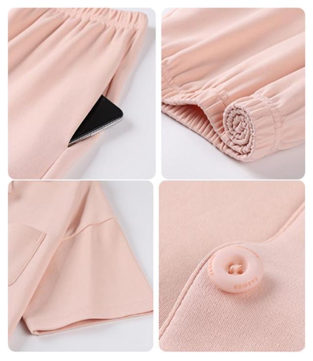 | 前開きの半袖トップ+長ズボンのパジャマセット。肌に優しいのコットン100%素材を使用しています。 さらりとした綿100%の素材は、通気性・吸水性ともに優れているので涼しく着用していただけます。 リラックス感あるゆったりサイズトップスとロングパンツなので、おうち時間やリラックスタイムを快適に過ごせます 薄手なので軽く、着心地が良くて洗濯してもすぐ乾くので毎日着ています。 ルームウェアやパジャマとしても良し、ちょっとしたお出掛け着で着るワンワイルウェアとしても良しのユーティリティアイテム。 | |