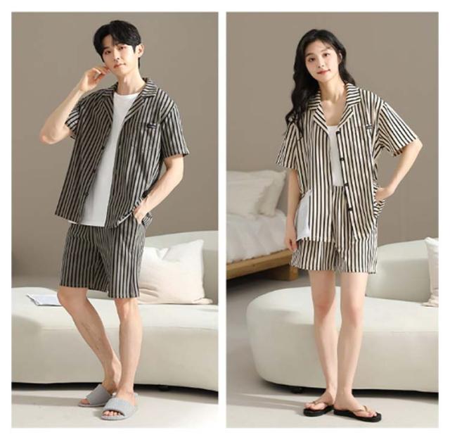 パジャマ 夏 綿100% 薄手 ストライプ柄 上下セット おしゃれ セットアップ ショートパンツ レディース メンズ 半袖トップス 春 ルームウェア 前開き 半袖 ナイトウェア 寝巻き 部屋着 入院 ハーフパンツ 半袖シャツ オープンカラー ペア 夫婦 お揃い 大きいサイズ