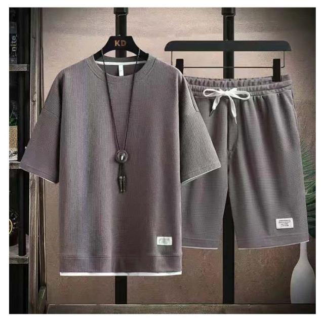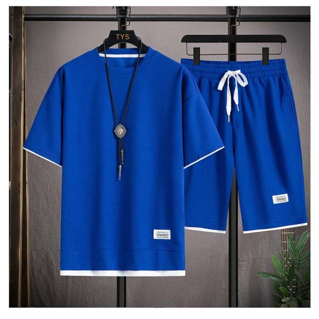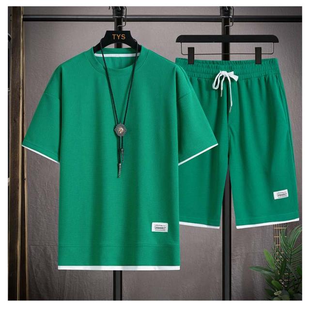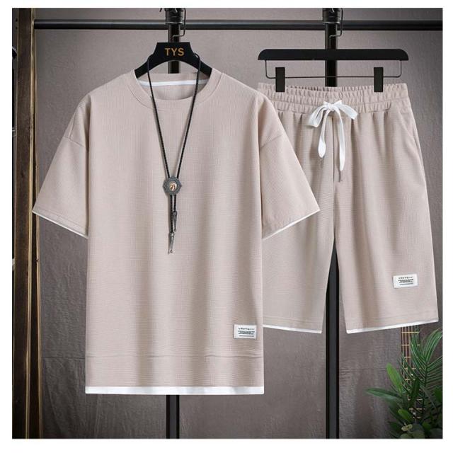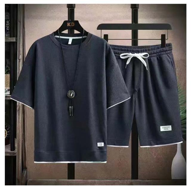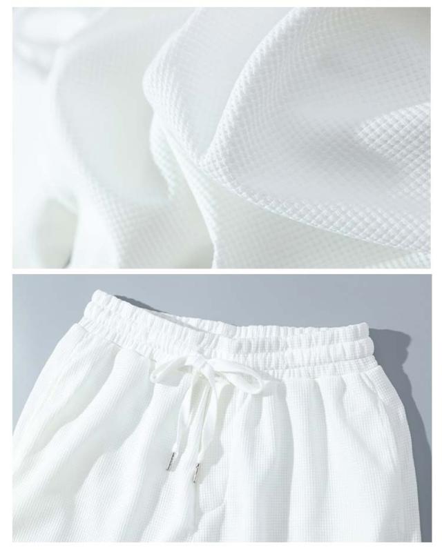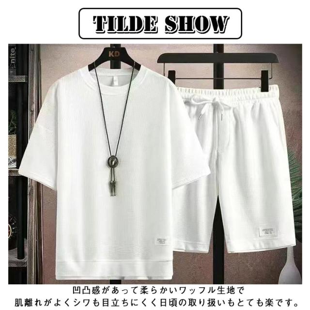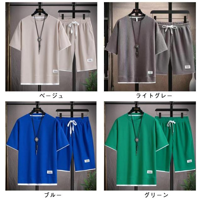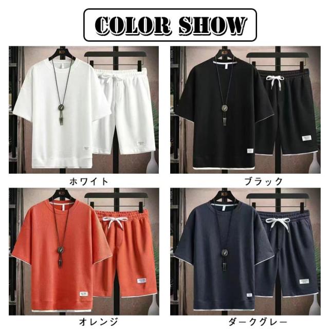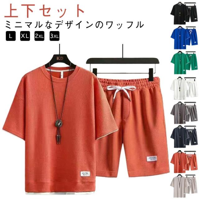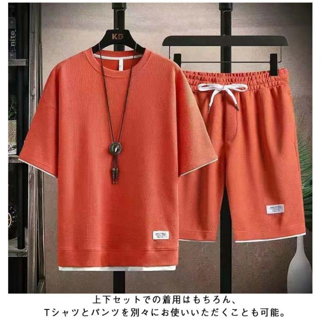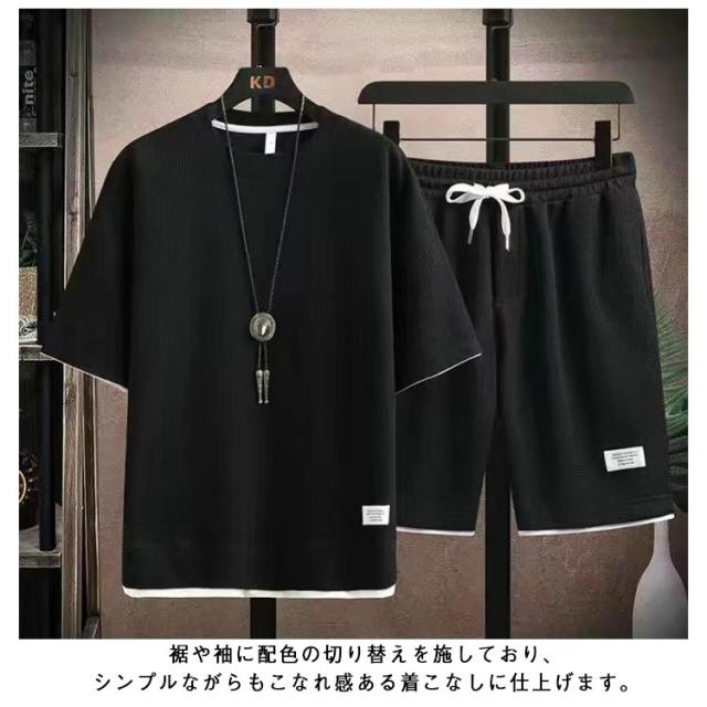 ショートパンツ 半袖 カットソー ワッフル ハーフパンツ 半袖 tシャツ 短パン ワッフル 夏 プルオーバー 春 メンズ 上下セット 薄手 ゆったり ルームウェア 部屋着 大きいサイズ ストレッチ 通気性 配色
