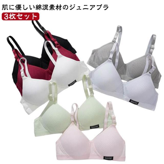 レディース 女子 ノンワイヤーブラ ブラジャー レディース 綿混 肌着 3枚セット 下着 中学生 インナー 無地 可愛い キッズブラ 子供ブラジャー ガールズ 小学生 学校 スクール