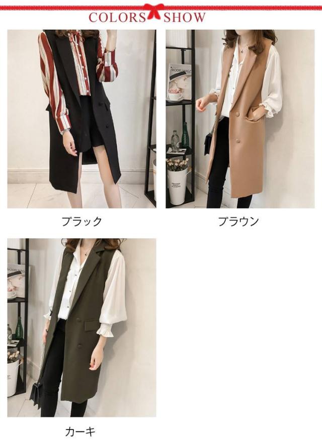 ライトアウター ミドル丈 ベスト オフィス ノースリーブジャケット テーラードベスト ロングベスト ノースリーブジャケット スーツベスト 春服 秋服 通勤 羽織 無地 30代 40代