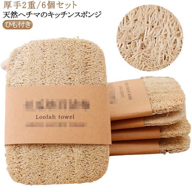 天然ヘチマ 食器洗い 6枚入り ヘチマたわし キッチン用品 ヘチマたわし ヘチマスポンジ キッチン用品 ひも付き 6個セット 手を傷つけない 油汚れがつかない