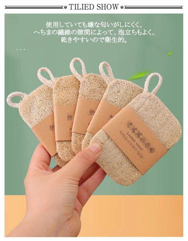 | 【天然ヘチマのキッチンスポンジ】【厚手2重/6個セット】【ひも付き】 使用していても嫌な匂いがしにくく、へちまの繊維の隙間によって、泡立ちもよく、乾きやすいので衛生的。 また油汚れにも強いので、一般的なスポンジと変わりなくプラフリーライフを実現できます。 キッチンでのお皿・お鍋洗いなどはもちろん、ボディ洗いや掃除に使用することもできます。 ご使用後の収納や乾燥に便利なひも付きです。 | |