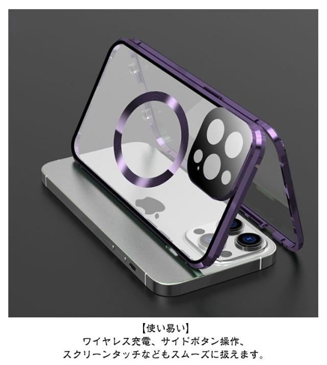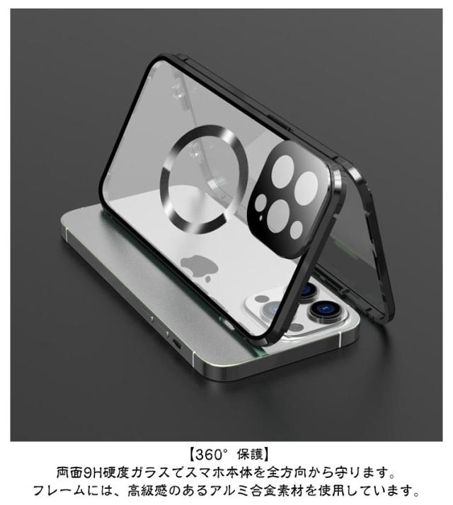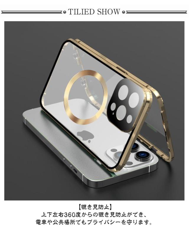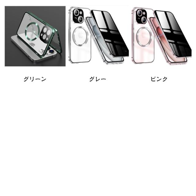 | 全面保護 覗き見防止Magsafe対応両面ガラスケース 【覗き見防止】 上下左右360度からの覗き見防止ができ、電車や公共場所でもプライバシーを守ります。 【360°保護】両面9H硬度ガラスでスマホ本体を全方向から守ります。フレームには、高級感のあるアルミ合金素材を使用しています。 【使い易い】ワイヤレス充電、サイドボタン操作、スクリーンタッチなどもスムーズに扱えます。 【ロック付き】 左右のロックでケースの前後パーツをしっかり固定!万が一落下しても本体がケースから飛び出す心配なし。 | |