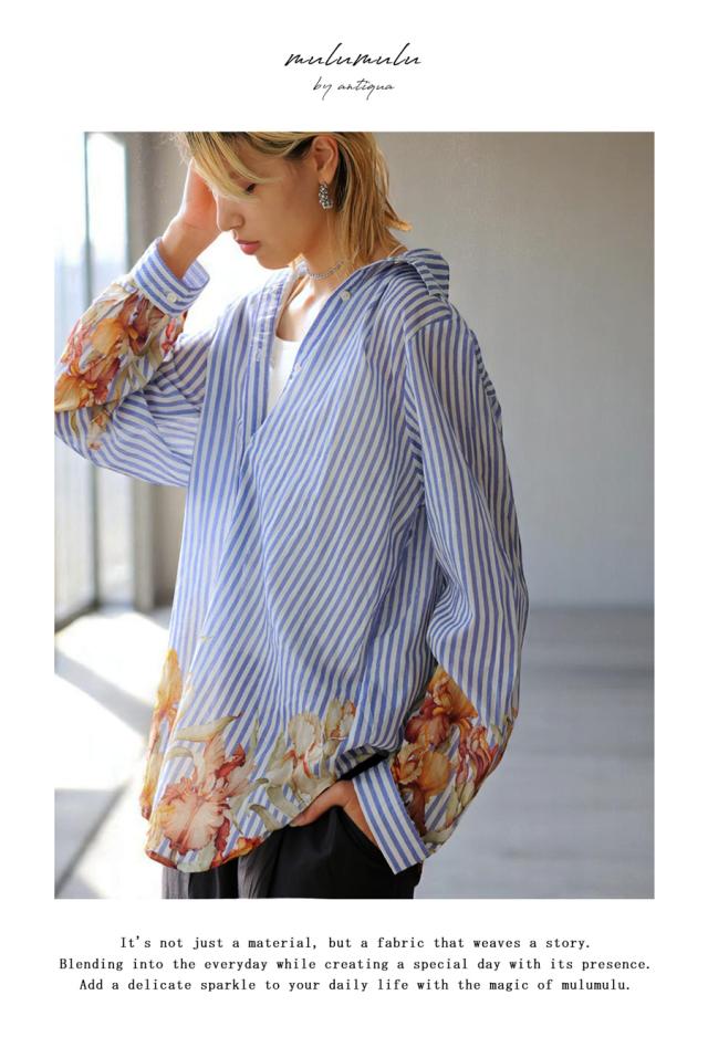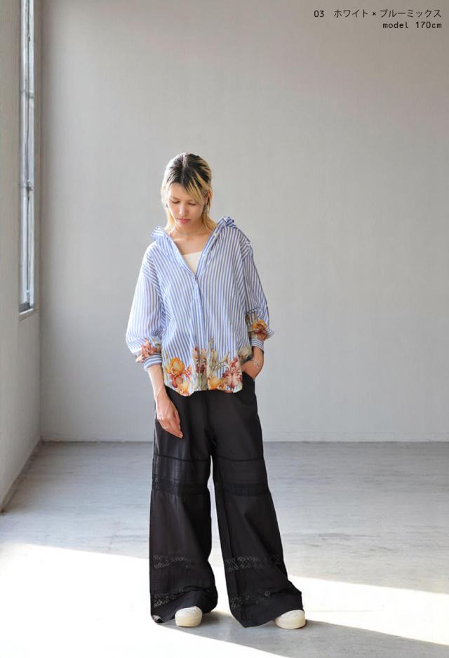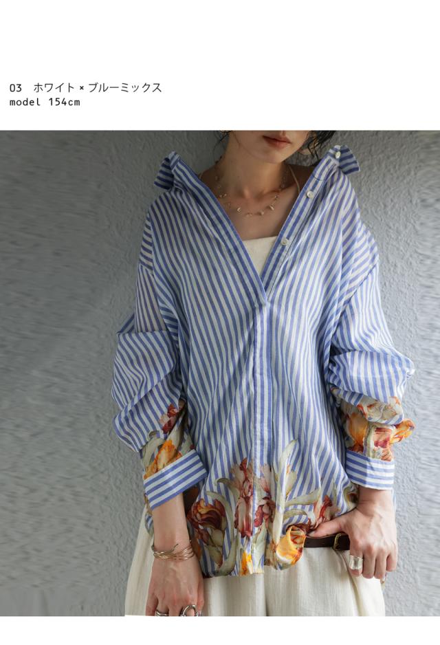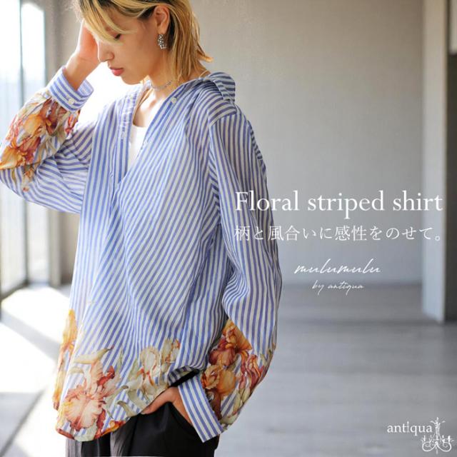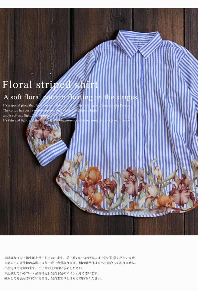 【予約:3月下旬納期】花柄ストライプシャツ レディース 長袖 トップス 送料無料・再入荷 (80)メール便可