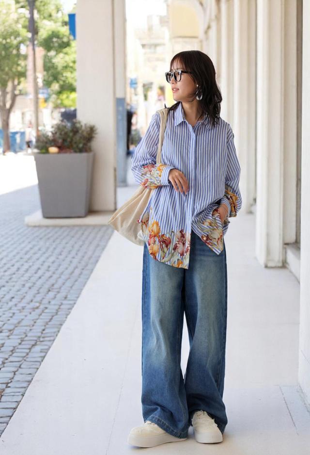 ストライプの存在感を引き立てながらも、絶妙な抜け感を演出し、甘さとシャープさのバランスが絶妙です。