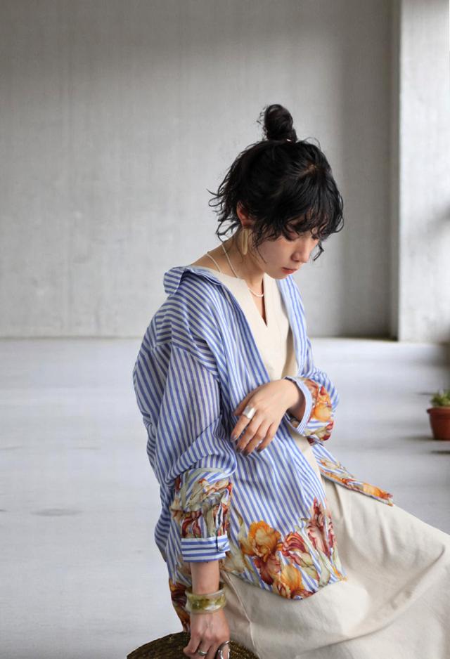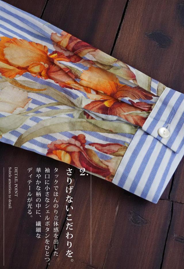 ヴィンテージ感と現代的なデザインが絶妙に融合した、フラワーストライプシャツです。