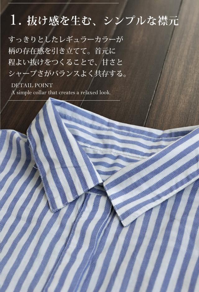 襟元はベーシックなレギュラーカラーで、カジュアルにもきれいめにも合わせやすいデザインに。