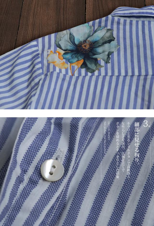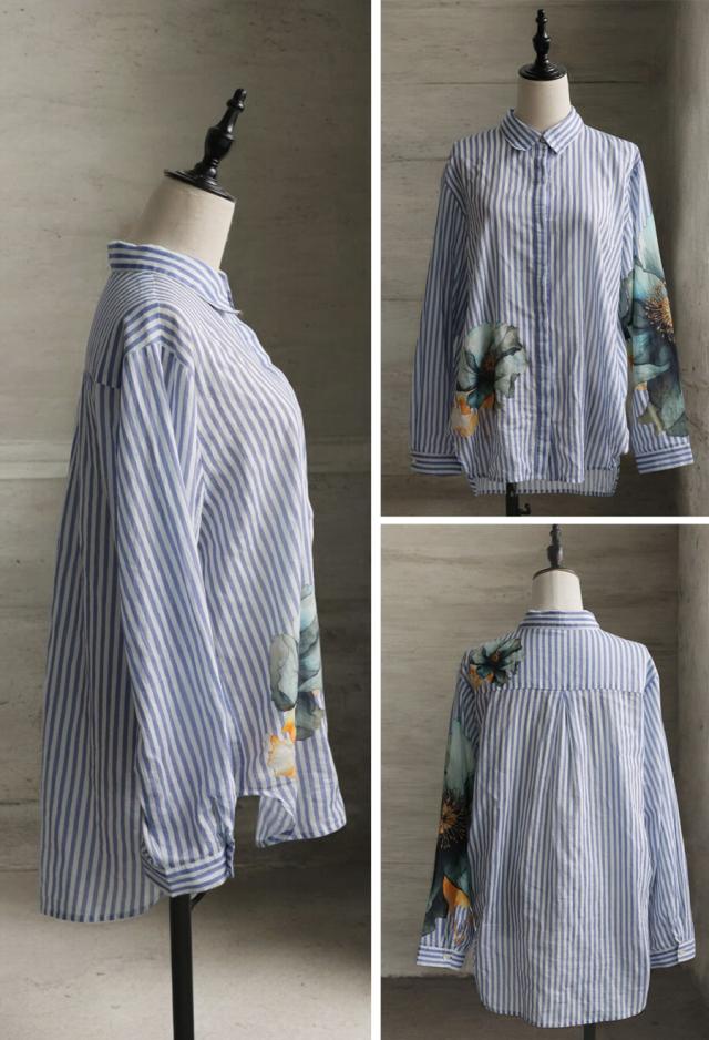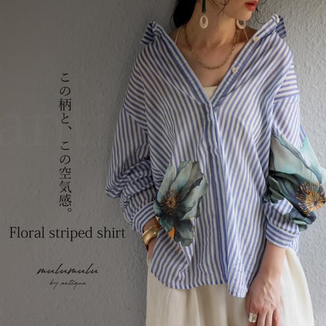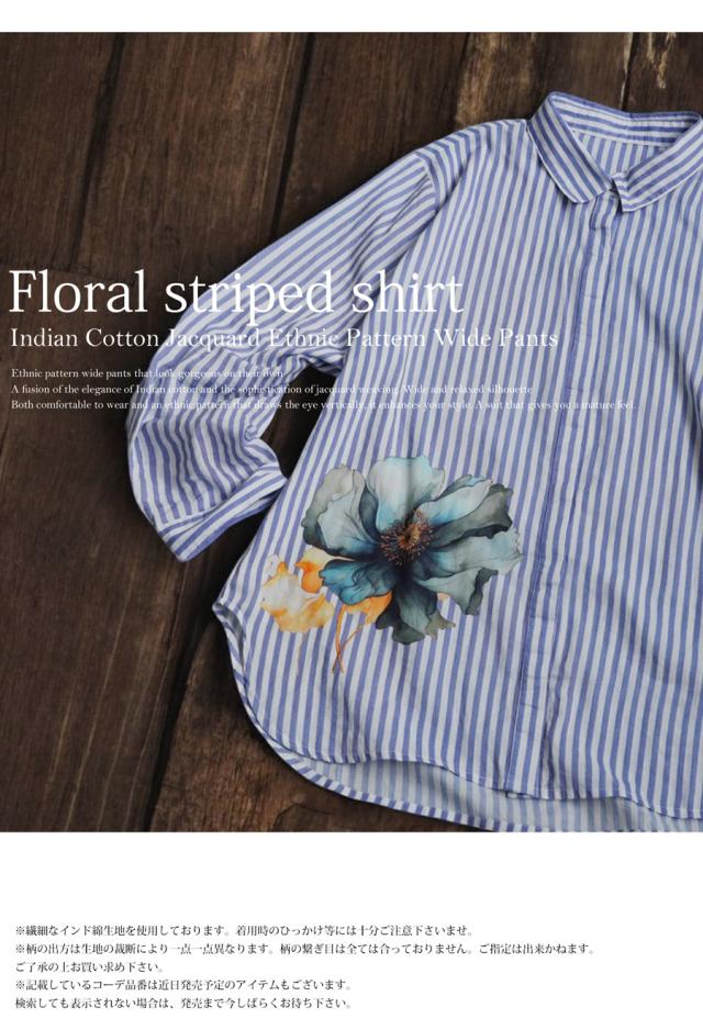 再入荷予定有!花柄ストライプシャツ 長袖 レディース トップス 送料無料・(80)メール便可