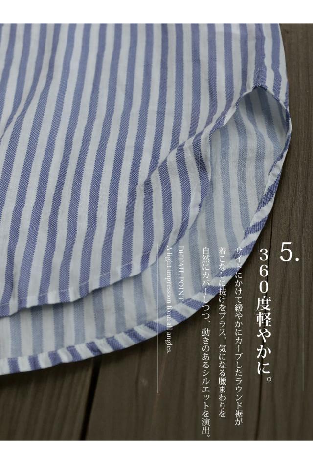 シルエットは程よくゆったりとしつつ、裾にかけて緩やかにラウンドさせることで、自然な体型カバーと抜け感を演出します。