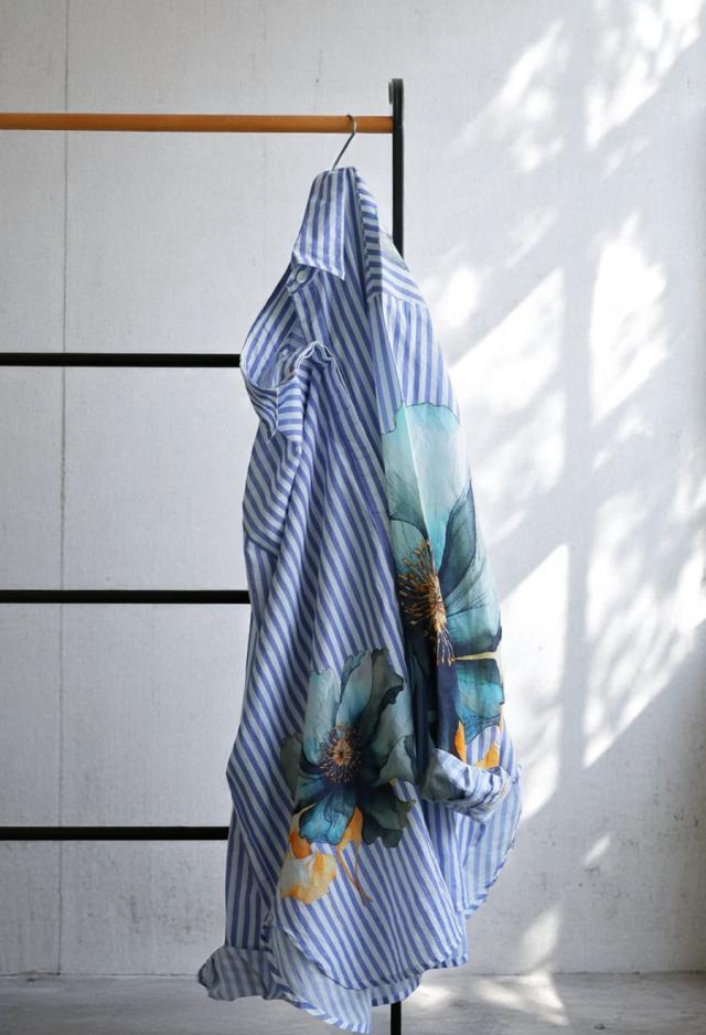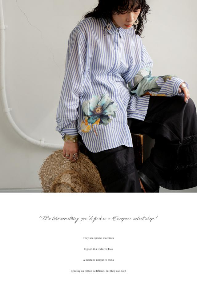 ふわりと風をはらむような軽やかさと、計算された柄の組み合わせが魅力のフラワープリントシャツです。