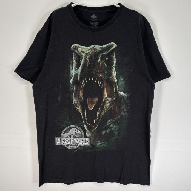 古着 ジュラシック・ワールド 半袖Tシャツ 映画 恐竜 クルーネック 大判 ラバープリント M ブラック メンズ