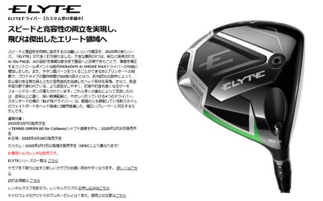 【特価/即納】2025 キャロウェイ ELYTE エリート ドライバー TENSEI GREEN 60 for Callaway シャフト 日本正規品