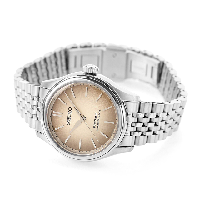 正規品 7年保証キャンペーン 送料無料 セイコー プレザージュ コアショップ専用モデル 流通限定モデル 日本製 メンズ 腕時計 SARX131 SEIKO PRESAGE Classic Series アナログ 柴色 ◆クラシックシリーズより、トラッドな趣向にマッチする小径サイズモデルが登場。ダイヤルの型打ちは小径サイズでも見ごたえのある、絹糸をイメージした繊細な放射模様を施しました。ダイヤルの美しさを最大限引き出すため、あえてカレンダー表示を無くし、ヴィンテージテイストを表現しています。ダイヤルカラーには、柴木で染めたくすんだ茶色で、江戸時代に流行した柴色を採用。奥深いダイヤルとレトロ感のある繊細な多列ブレスレッドが、トラッドな雰囲気を醸成します。誕生日や記念日のプレゼントにもおすすめです。 発売日:2025年6月発売 機械式腕時計