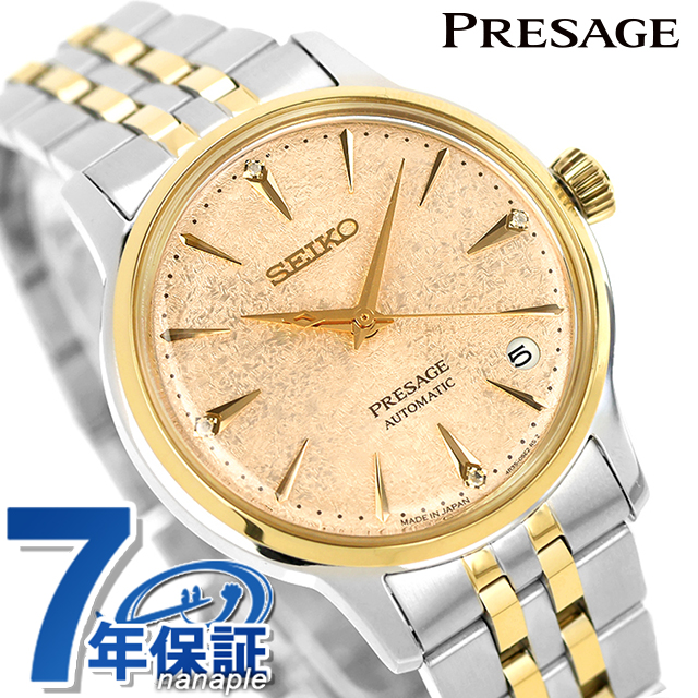 正規品 7年保証キャンペーン 送料無料 セイコー プレザージュ ダイヤモンド 日本製 レディース 腕時計 SRRY052 SEIKO PRESAGE Cocktail Time アナログ ライトイエロー ◆夏のフローズンカクテルをイメージしたモデルが登場。夏らしいフローズンカクテルを意識したクラッシュした氷の表情を思わせる、オリジナリティある型打ちと、さわやかなダイヤルの色味が特徴です。ダイヤをセッティングする4か所の角台座とV字形状略字を今回新しく考案。カクテルタイムのアイコンであるくさび形状の略字はキープしています。ブレスレット形状は、コマのバランスを見直し、テーパーをかけ、より軽やかにアップデートしました。ケースの厚みを軽減するため、通常のスクリュー金属裏ぶたを採用しています。誕生日や記念日のプレゼントにもおすすめです。 発売日:2025年6月発売 機械式腕時計