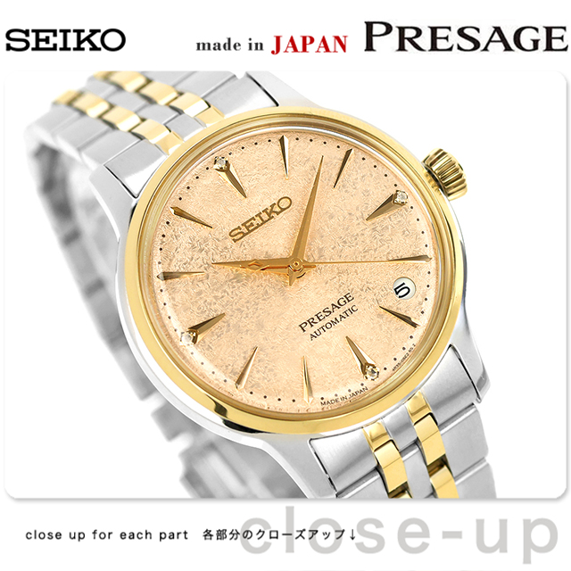 セイコー プレザージュ Cocktail Time 自動巻き 腕時計 ブランド レディース ダイヤモンド SEIKO PRESAGE SRRY052 アナログ ライトイエロー 日本製 高級 おしゃれ 防水 軽い 華奢 かわいい プレゼント 女性 実用的