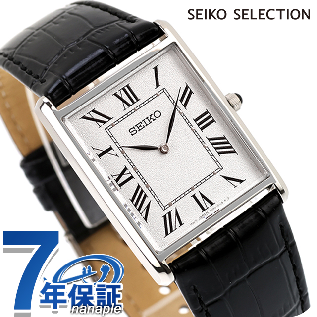 正規品 7年保証キャンペーン 送料無料 セイコーセレクション 流通限定モデル メンズ 腕時計 SSEH019 SEIKO SELECTION nano・universe Special Edition アナログ シルバー ◆デザインテーマはMy Favorite Vintage。時代を超えて愛されるヴィンテージスタイルの時計を目指して、人気セレクトシップ「ナノ・ユニバース」とコラボレーションをしたモデルです。人気の角型モデルに待望のメンズサイズが登場。大振りなケースを採用しており、コーディネートのポイントになる1本です。レザーストラップ色・ダイヤルカラー等を「ナノ・ユニバース」がセレクト。ダイヤルのレイアウトはレディスモデルとペアで楽しめる雰囲気を残しながら、メンズサイズとしてバランスが良い略字やミニレールの太さにこだわりました。レザーバンドは、ハーフマットの型押しのカーフを採用し、男性が身に着けやすい質感になっています。 発売日:2025年6月発売