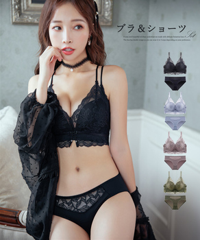 繊細なボタニカル柄レースを使用、セクシーで美しいワイヤーレス下着上下セット