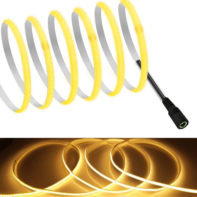 ◆商品名:【RYE】 COB テープライトLEDストリップライトフレキシブル 高密度 幅5mm 隠れたLEDテープライト5m 320LEDs/m 電球色2700K DC12V