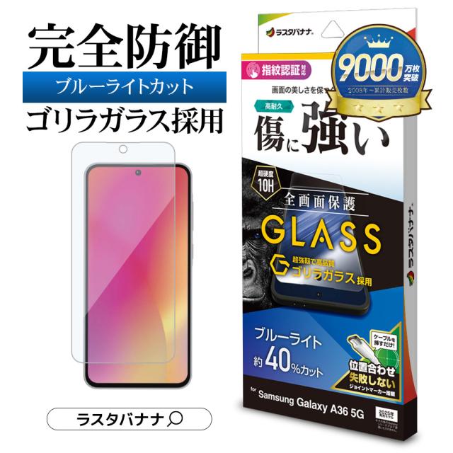 【送料無料】Galaxy A36 5G ガラスフィルム 全面保護 ブルーライトカット 高光沢 高透明 クリア ゴリラガラス採用 0.33mm 硬度10H 貼り付けガイド 指紋認証対応 ギャラクシー SC-54F 保護フィルム GGE4647GA36 ラスタバナナ
