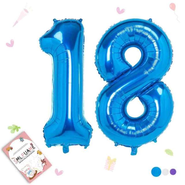 数字 バルーン 40インチ 大きい バースデーバルーン (ブルー, 数字18)