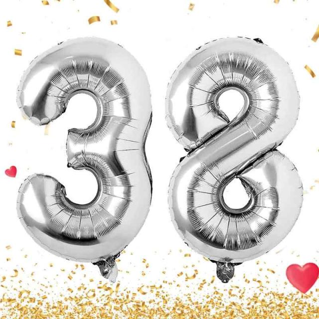 数字 バルーン 40インチ 大きい バースデーバルーン (シルバー, 数字38)