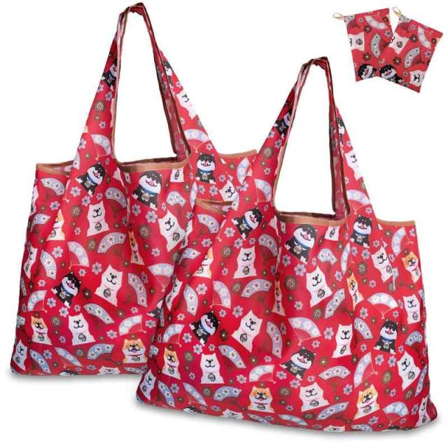 [GOKEI] エコバッグ 【2個入り 50×67cm 大容量】 折りたたみ 買い物バッグ コンビニバッグ 防水素材 収納 水や汚れにも強い 軽量 コンパクト (犬柄(2枚組))