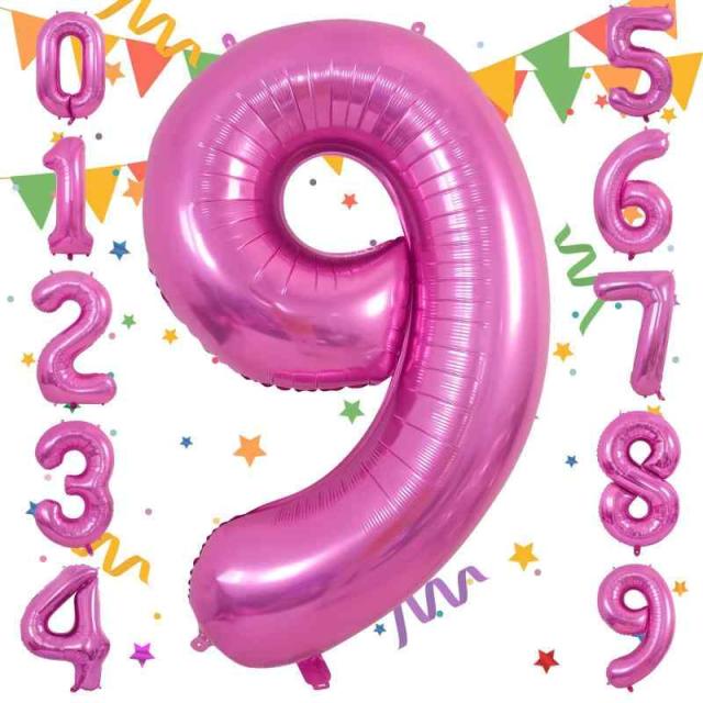 Sekat 数字 バルーン 40インチ ナンバーバルーン 誕生日 風船 バースデー 飾り アルミ風船 ハッピーバースデー 結婚式パーティー 記念日 ウェディング イベント お祝い 装飾 デコレーション(約84cm-90cm) (ピンク, 9)