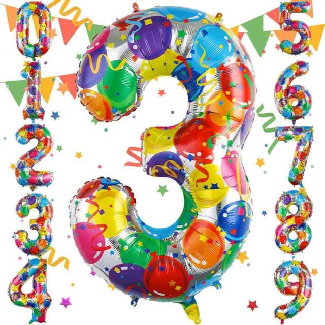 Sekat 数字 バルーン 40インチ ナンバーバルーン 誕生日 風船 バースデー 飾り アルミ風船 ハッピーバースデー 結婚式パーティー 記念日 ウェディング イベント お祝い 装飾 デコレーション(約84cm-90cm) (マルチ, 3)