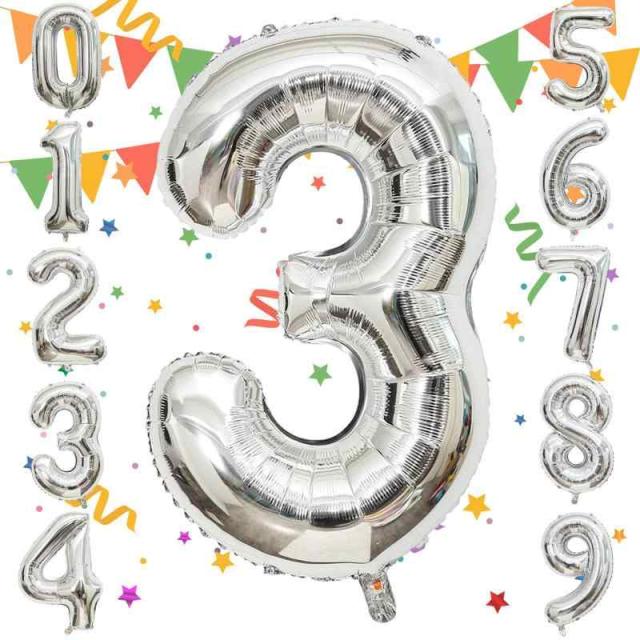 Sekat 数字 バルーン 40インチ ナンバーバルーン 誕生日 風船 バースデー 飾り アルミ風船 ハッピーバースデー 結婚式パーティー 記念日 ウェディング イベント お祝い 装飾 デコレーション(約84cm-90cm) (シルバー, 3)